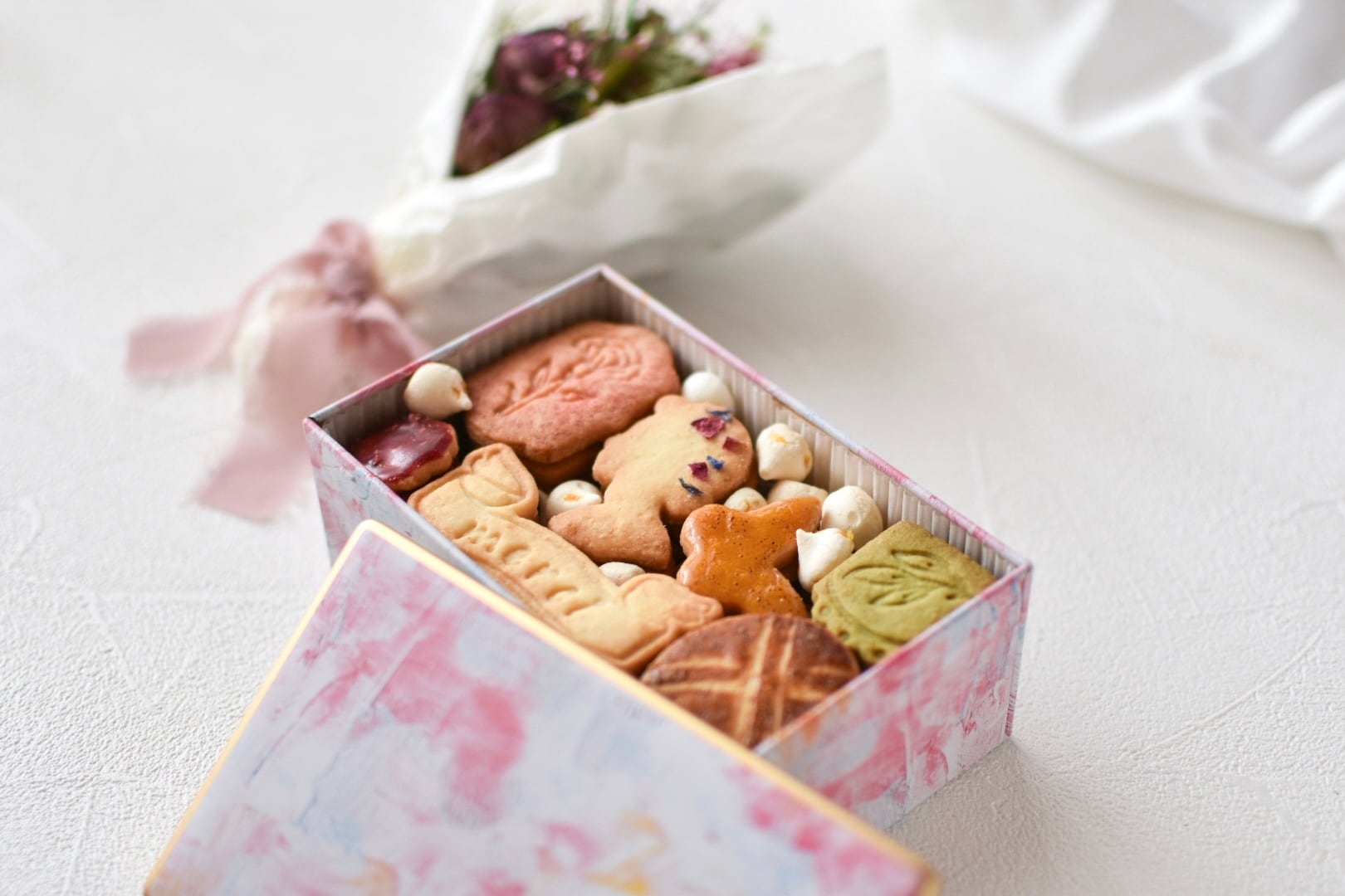 ピンク色の優しいタッチの缶に、心踊る可愛いクッキーたちをたっぷりと詰め込みました。