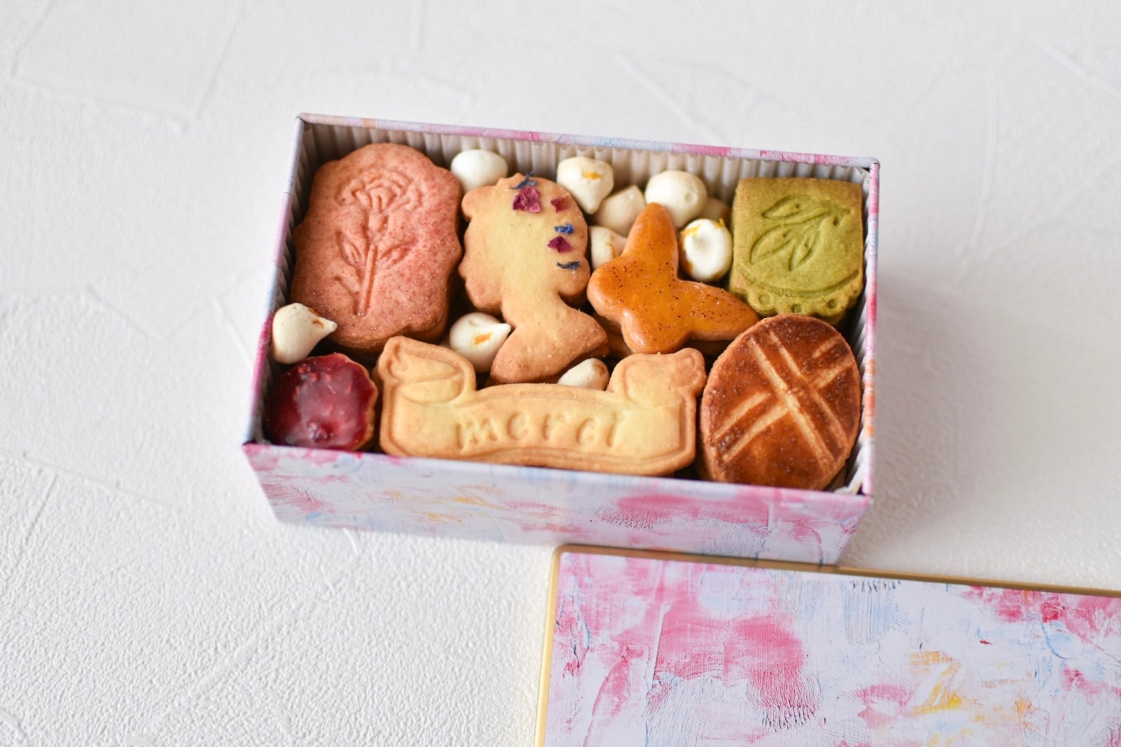 ピンク色の優しいタッチの缶に、心踊る可愛いクッキーたちをたっぷりと詰め込みました。