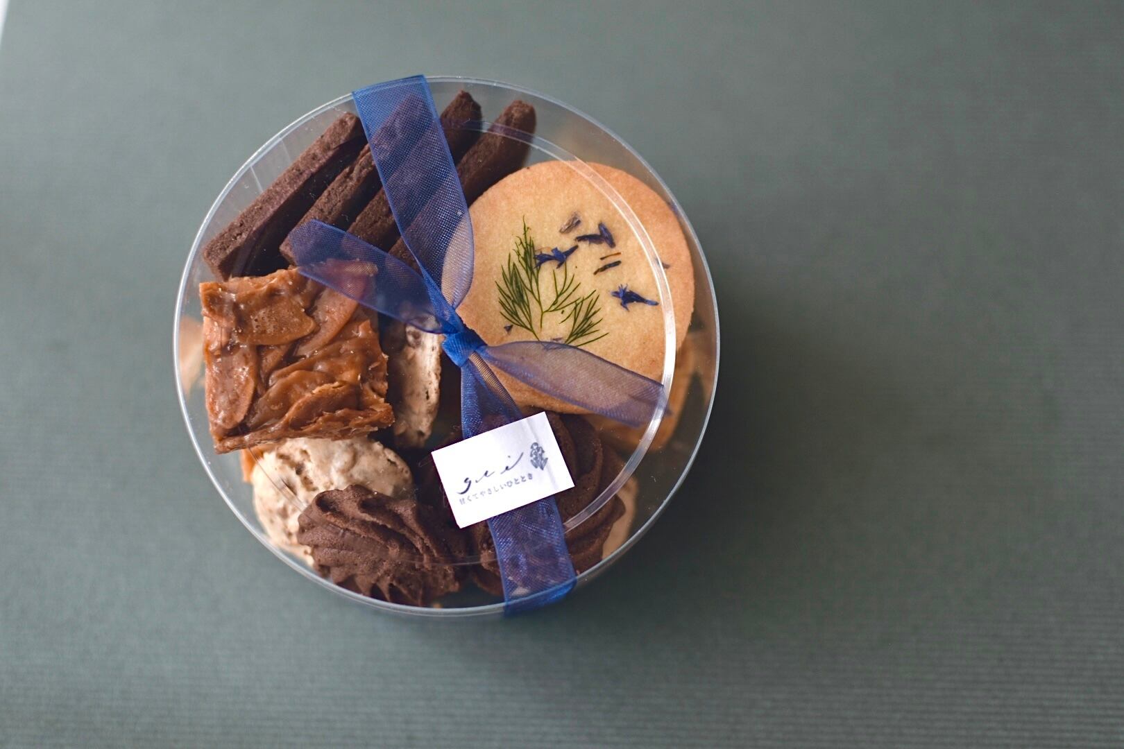 ディルとコーンフラワーをあしらったバターサブレの他、シンプルで定番なクッキーをお楽しみ頂けます。